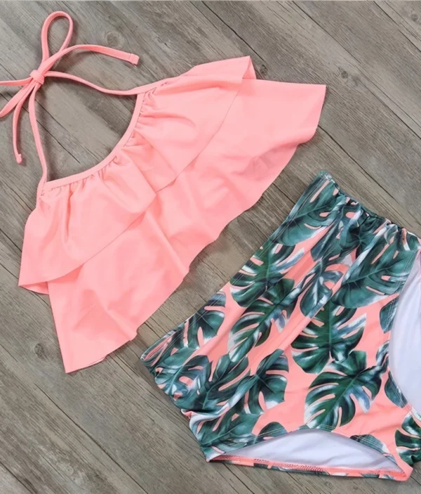 Maillot de Bain 2 Pièces – Volants & Motif Tropical