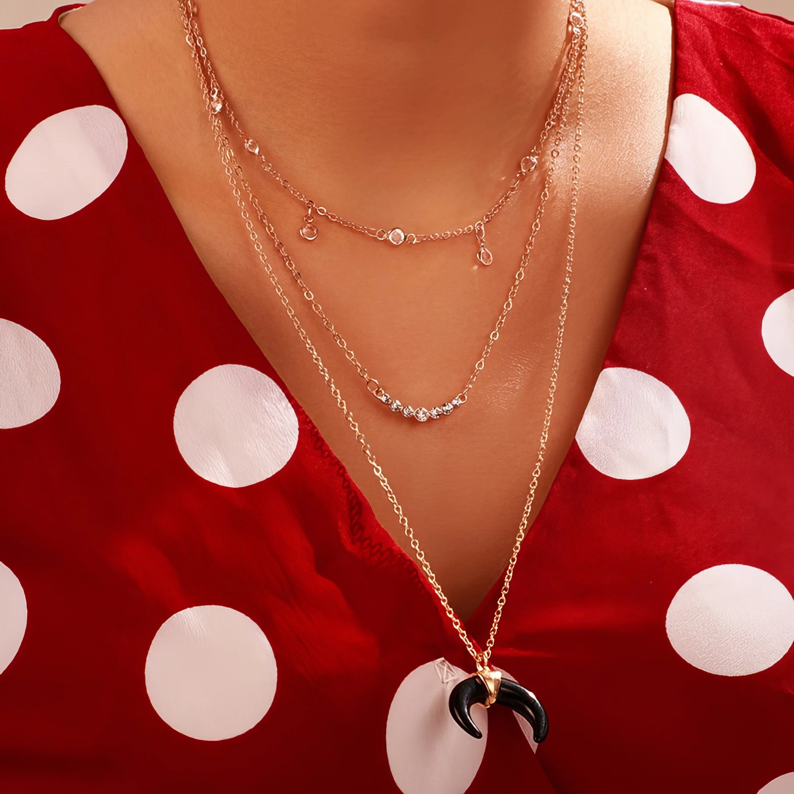 • 1 Collier multi-rangs (3 chaînes attachées ensemble)