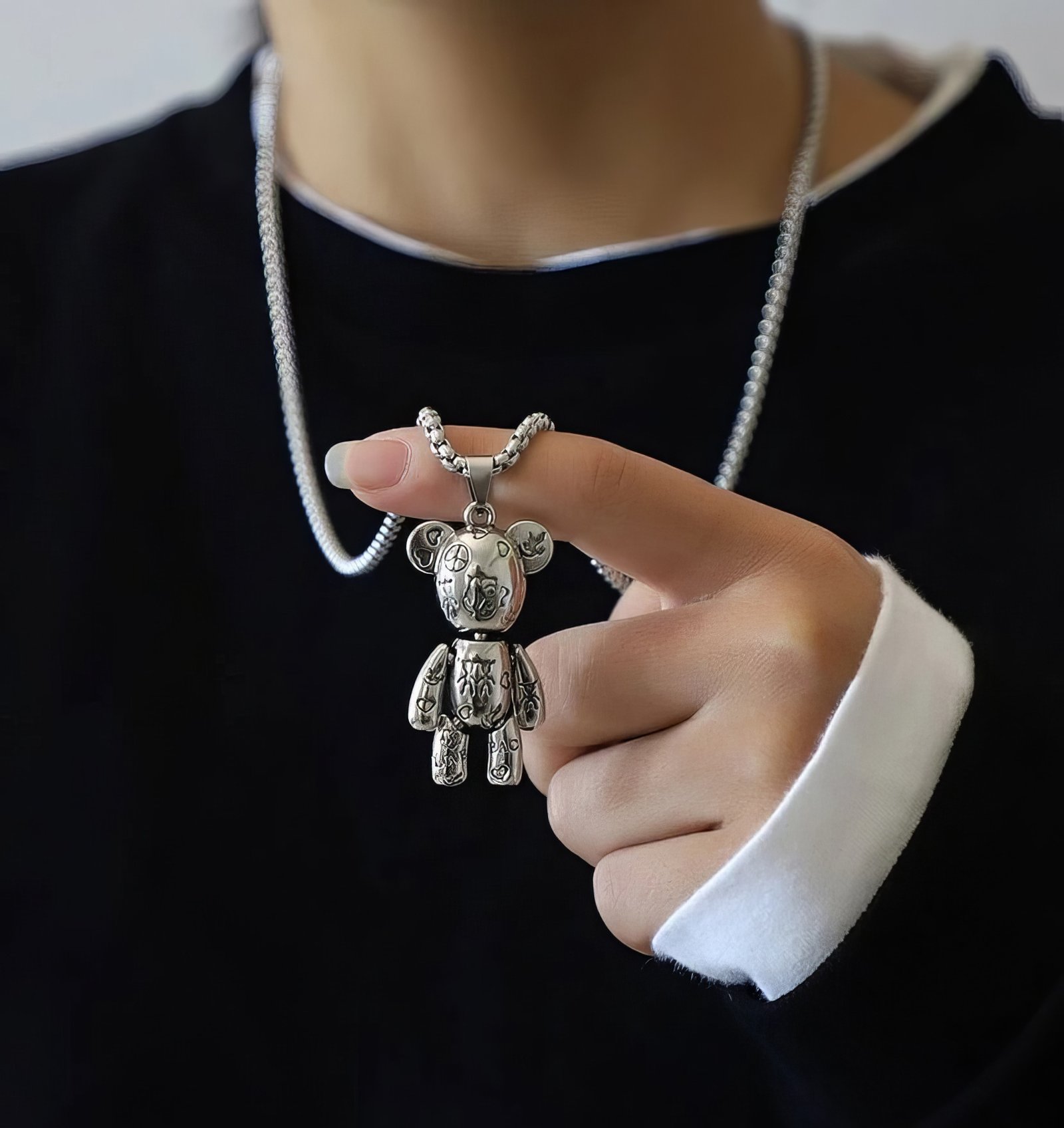 Le collier unisexe “Ourson Gothique” est un bijou unique et stylé. Il se compose d’une chaîne en métal robuste et d’un pendentif en forme d’ourson détaillé avec des motifs gothiques et punk. Le pendentif, de taille moyenne, présente des détails gravés qui ajoutent une touche de caractère et de mystère. Ce collier est parfait pour ceux qui veulent exprimer leur individualité et leur amour pour le style alternatif. Idéal pour les tenues décontractées et les looks urbains, il est à la fois tendance et distinctif.