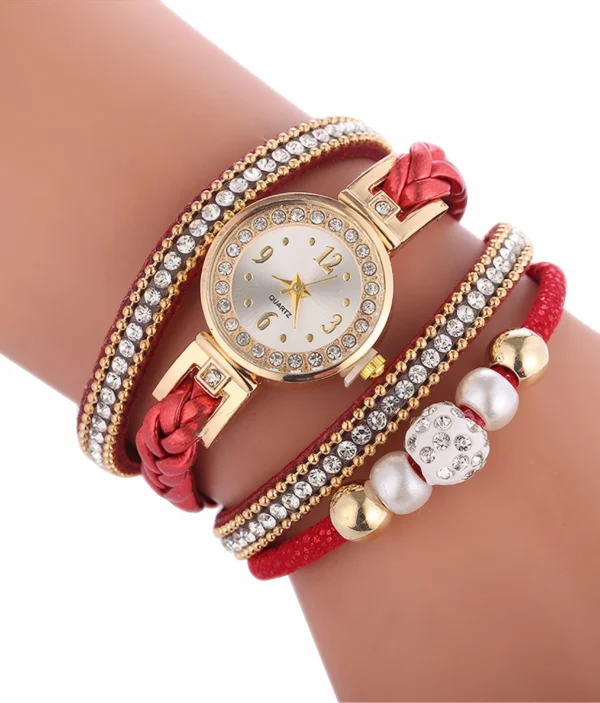 • Matériau : Alliage métallique, cuir synthétique et perles dorées
